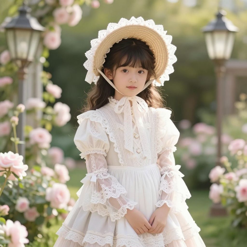 Photorealistic digital artwork of a young Asian woman with long brown hair, wearing a white turtleneck and white knit stockings, sitting on an orn