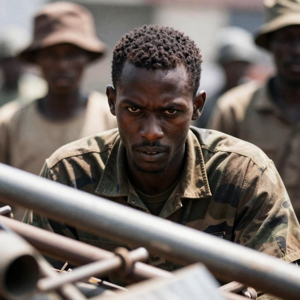 Group of Armed African Men on Ship Deck
