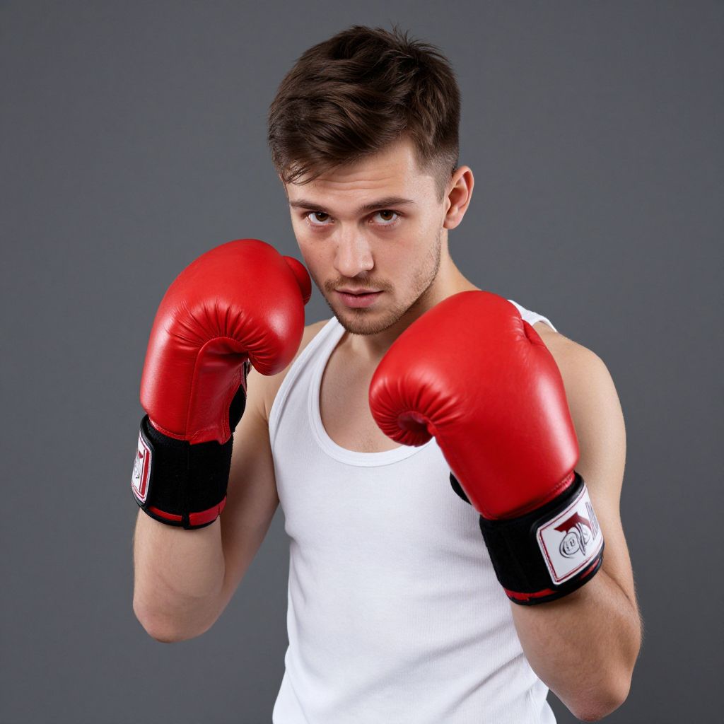 Boxer fighter costume, boxing gloves, 1boy, solo, male focus, brown hair, facial hair