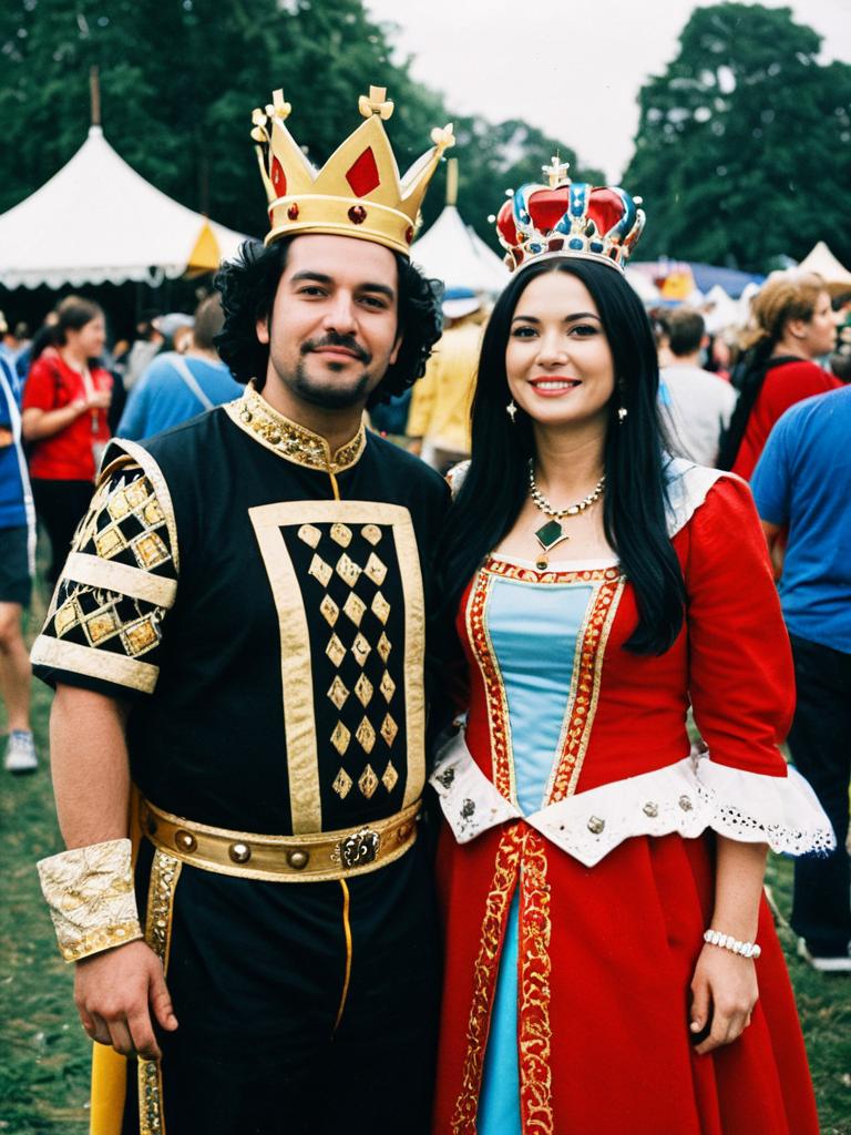 Couple in King and Queen Costumes, candid cosplay portrait at festival