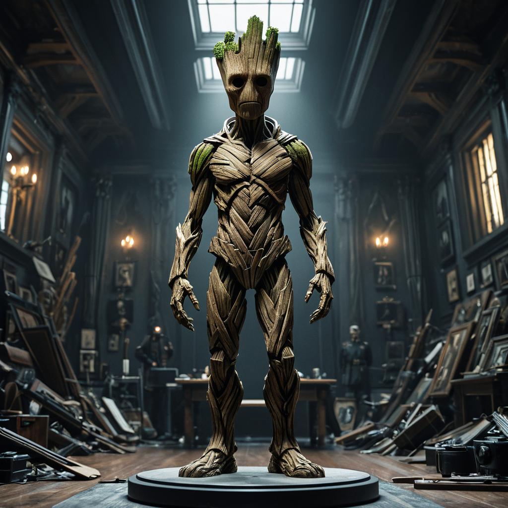 Hyperrealistic Groot Sculpture in Historical Setting