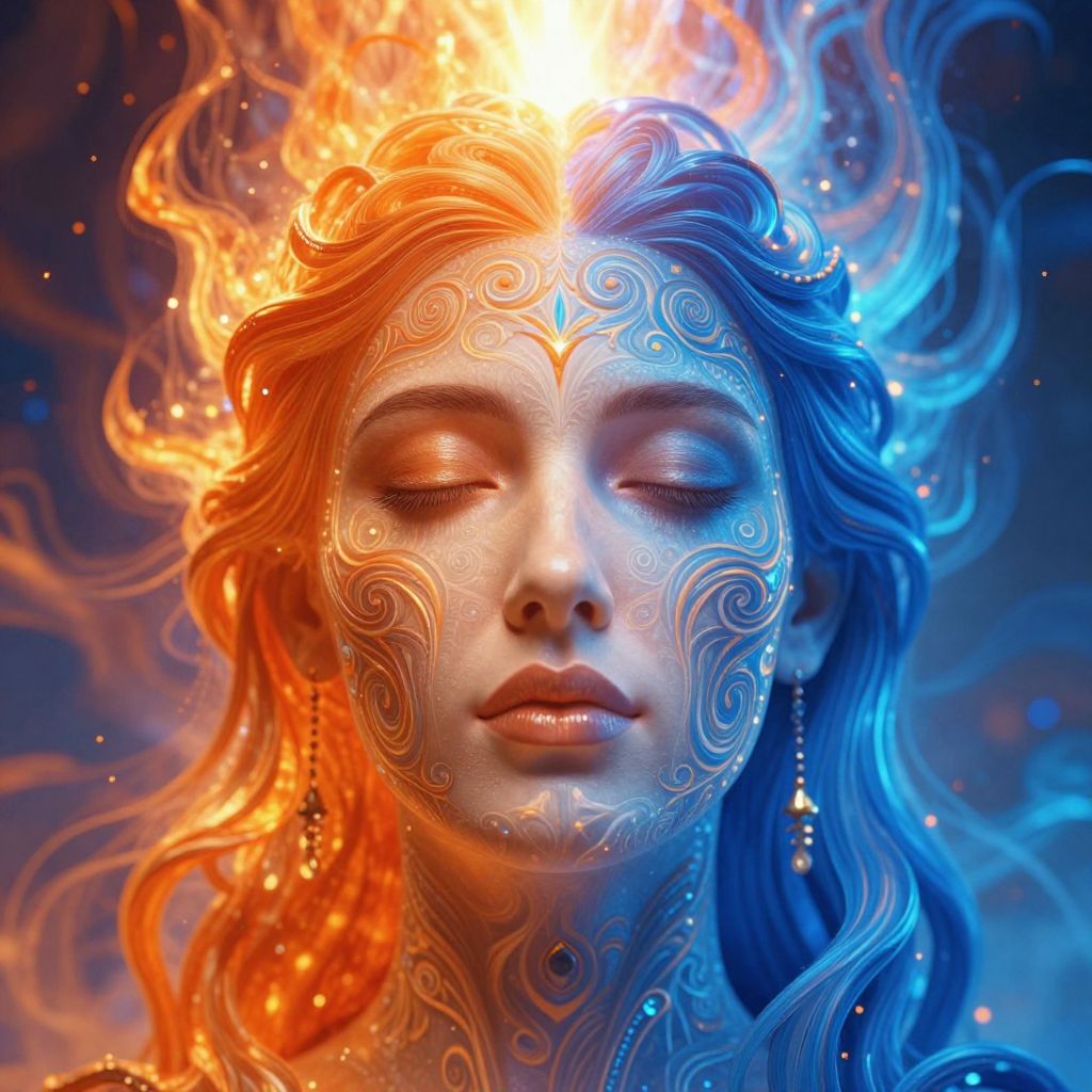 An ornate, abstract neo-abstract surreal door featuring two faces, a sun, and intricate details in gold and blue, reminiscent of Odilon Redon and Les Nabis.