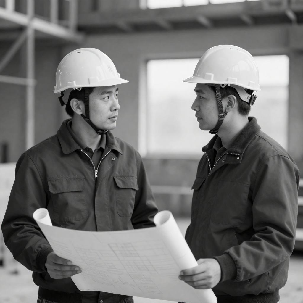 Photograph of a male worker in a blue shirt, black pants, and a worn hat, sitting on a metal pipe in an industrial setting. He wears gloves and looks down, holding a wrench. Rusty pipes and machinery surround him, with sunlight filtering through. The worker's posture is relaxed yet focused.