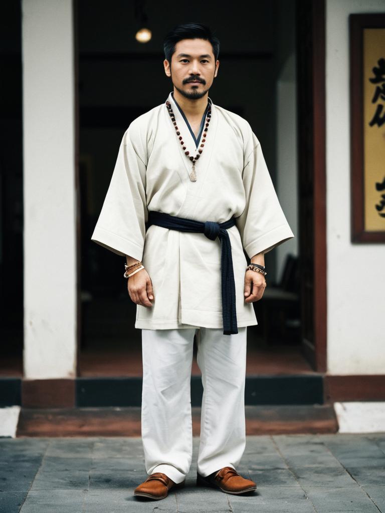 Elderly Korean man in traditional clothing outdoors
