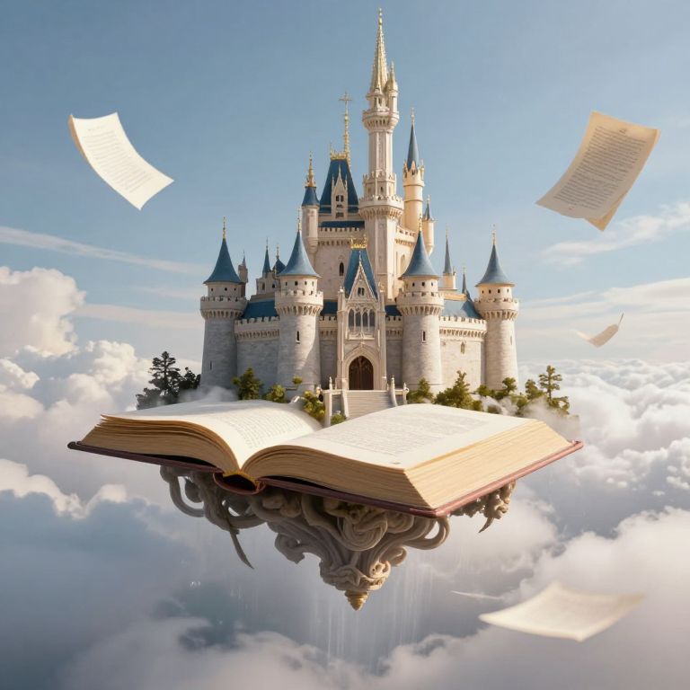 A whimsical realm of knowledge ascends into the boundless sky, where the weightless pages of books and the towering spires of imagination float serenely above a dreamy canvas of clouds, evoking a sense of wonder, freedom, and the infinite possibilities of the mind.