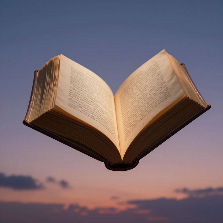 A celestial library of knowledge ascends through a twilight sky, its pages rustling with the echoes of ancient wisdom and the promise of endless discovery, inviting the soul to soar beyond the boundaries of the known.