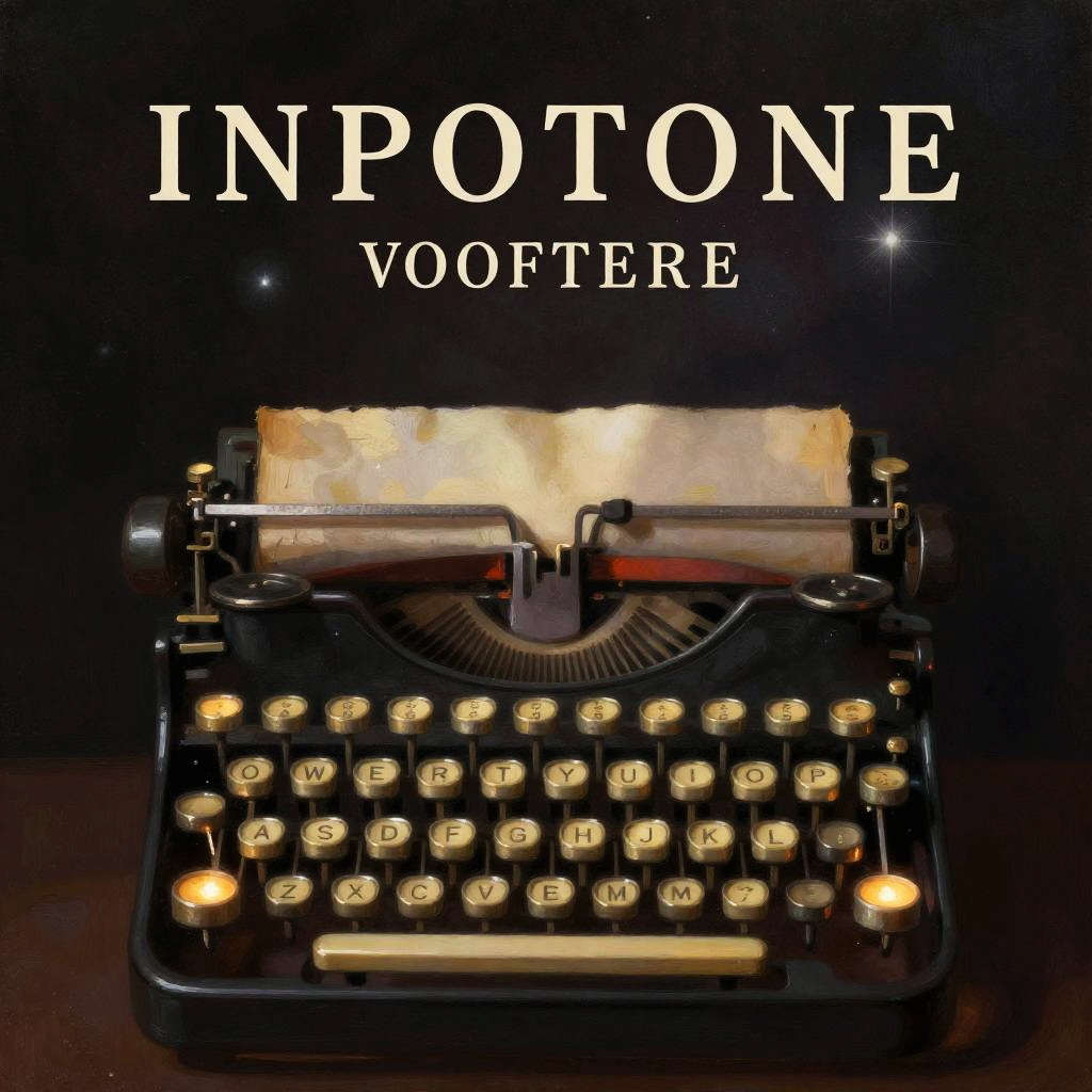 Seminal book cover art, featuring an abstract blend of cosmic elements and vintage typewriter keys, glowing softly against a dark background, evoking inspiration and timeless knowledge, digital painting style with warm, muted tones