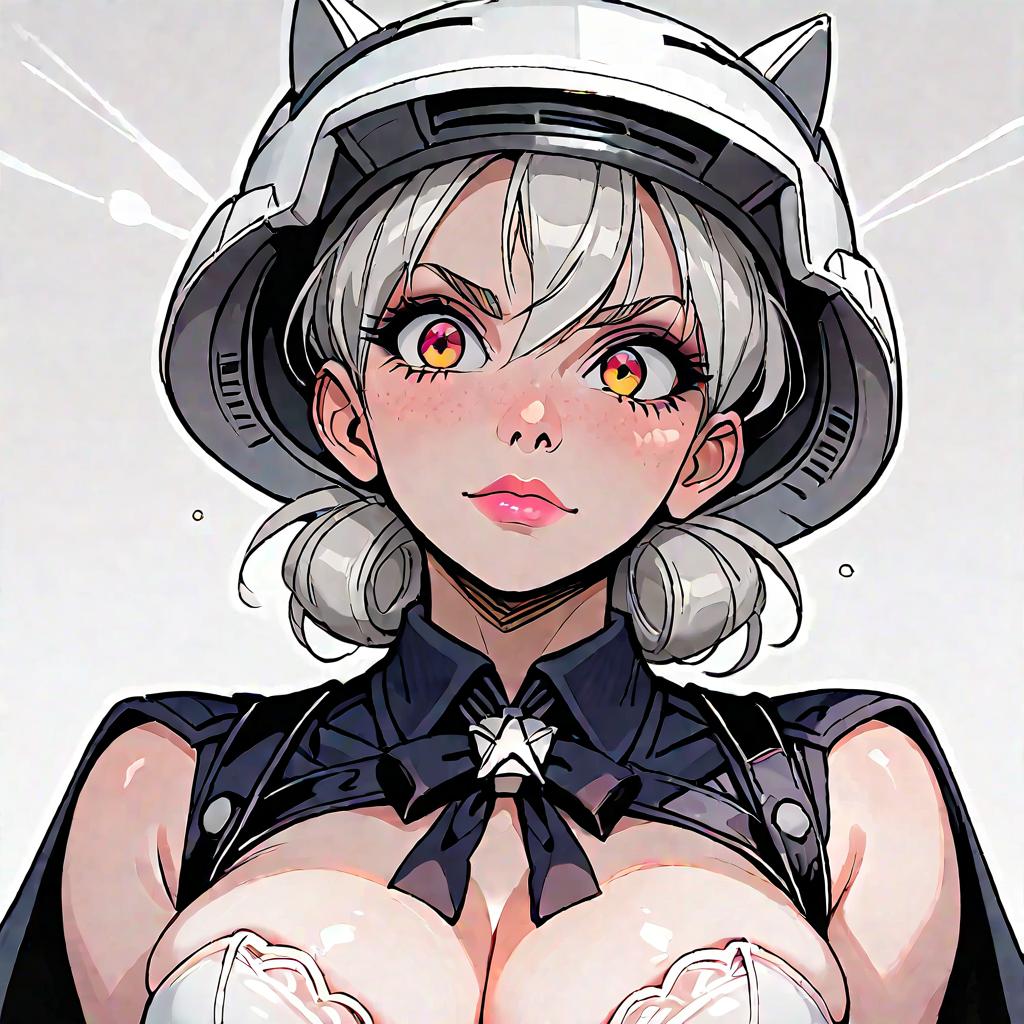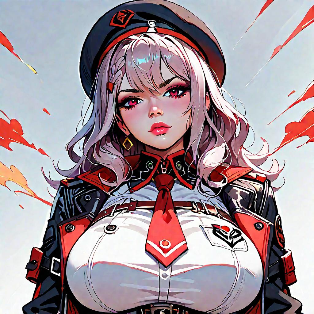 Score_9, score_8_up, source_animerapi \(nikke\), rapi main, cropped jacket, red tie, beret, upper body, serious, looking at viewerlarge breasts