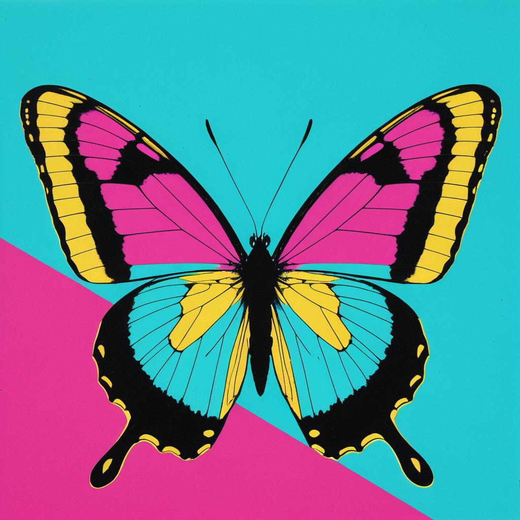 Artwork in the style of Andy Warhol illustrating music vinyl record, with high saturated colors paired with muted complementary tones.