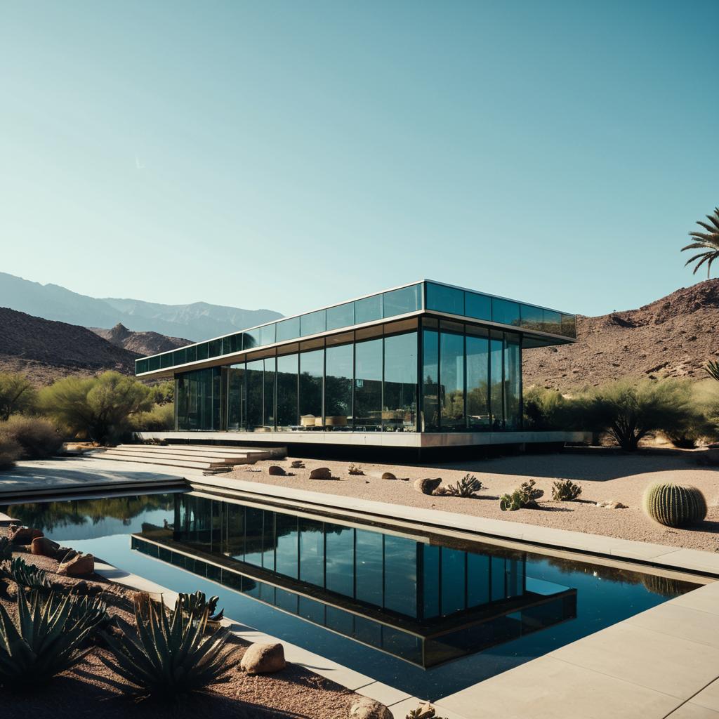 Majestic desert oasis in art deco, 1930s geometric elegance