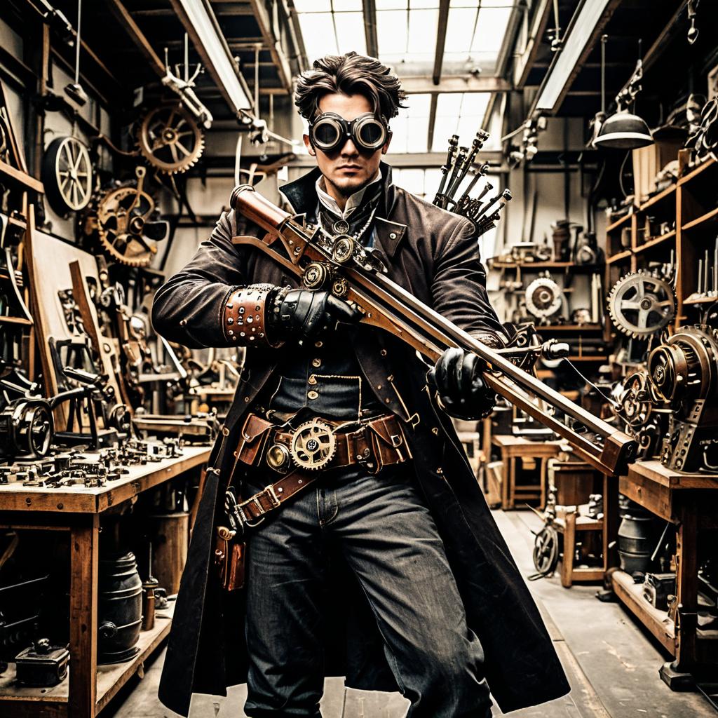 Steampunk Inventor with Mechanical Crossbow