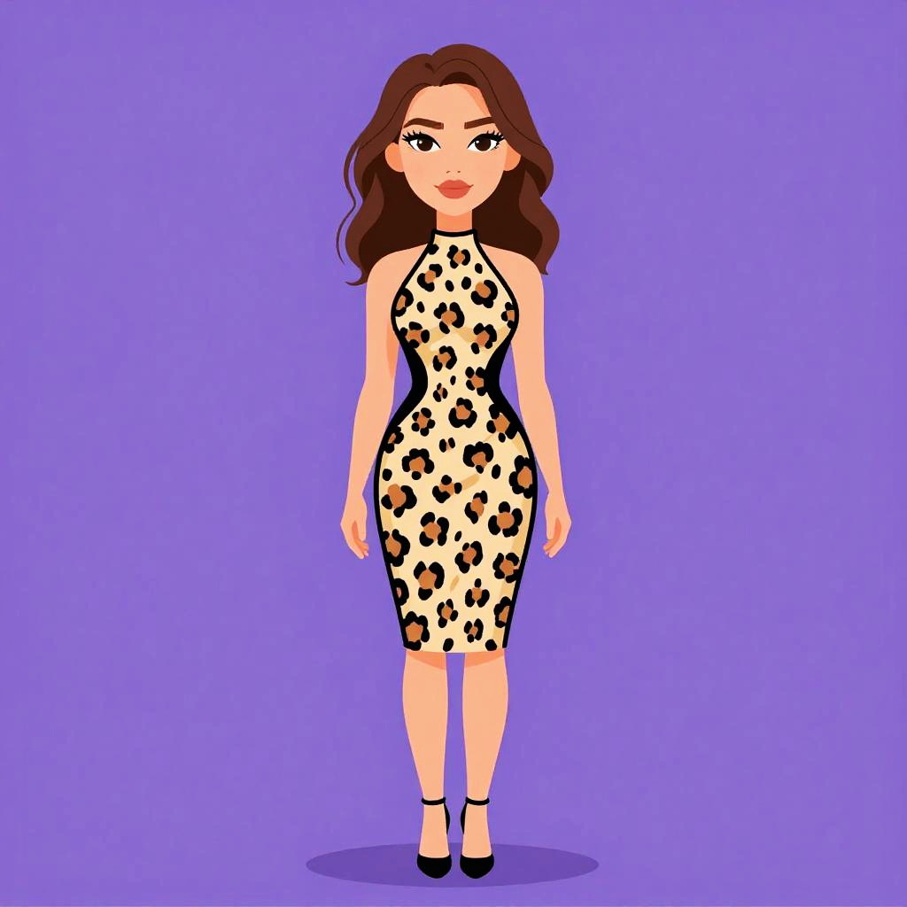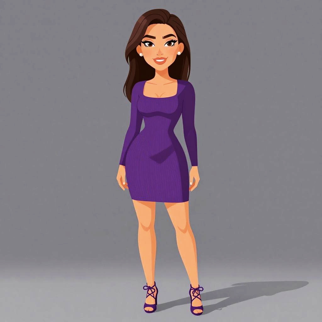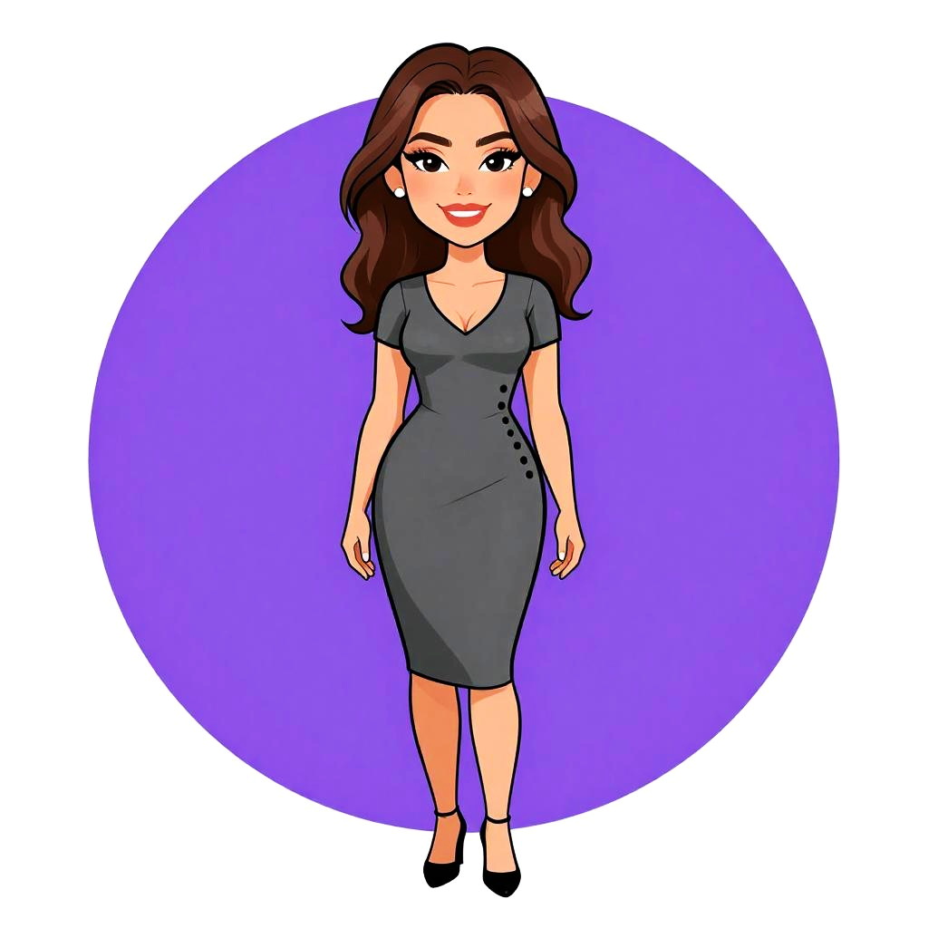 Woman with pretty face and pretty hair. smiling Woman, chic, form-fitting midi dress in charcoal grey, V-neck, short sleeves, black trim and button details along the front, knee-length, black strappy heels. --sref 1467