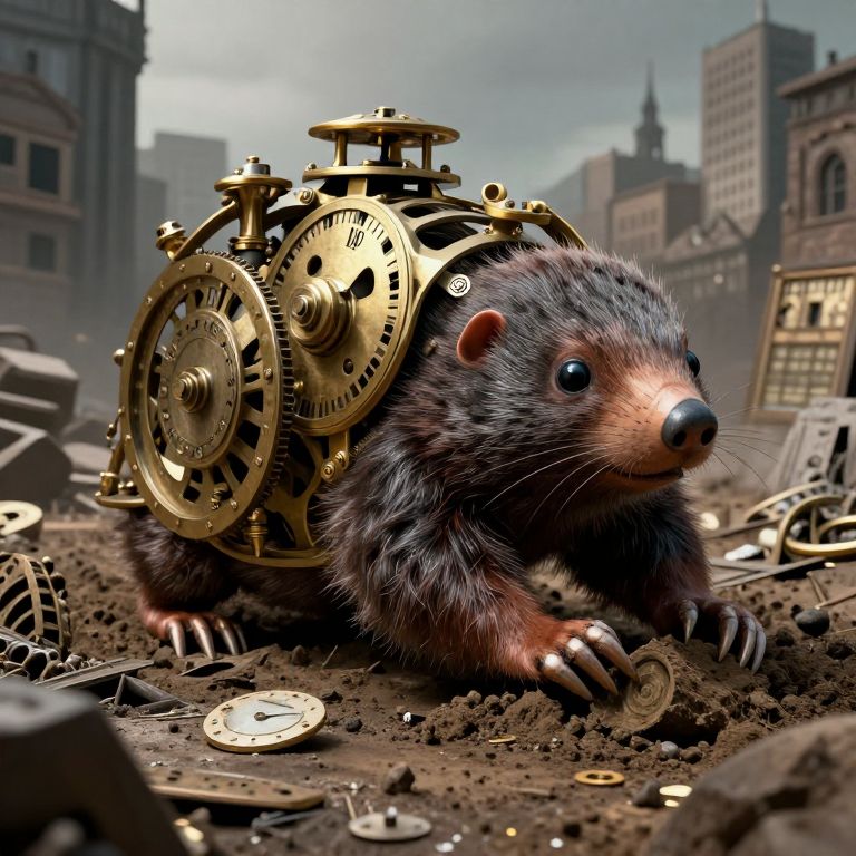 A colossal clockwork mole digs beneath cities, forcefully rewriting events of the past by reshaping buried history.