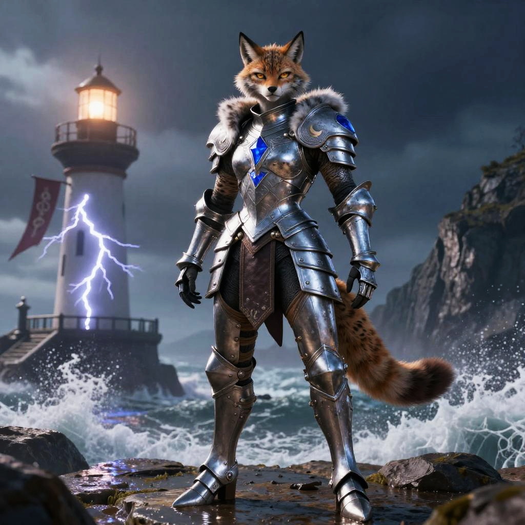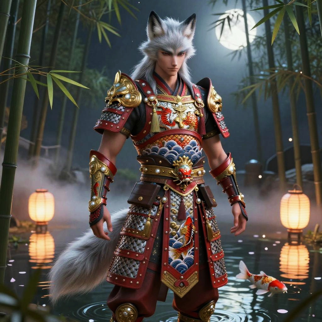 Kitsune Paladin in Moonlit Bamboo Grove