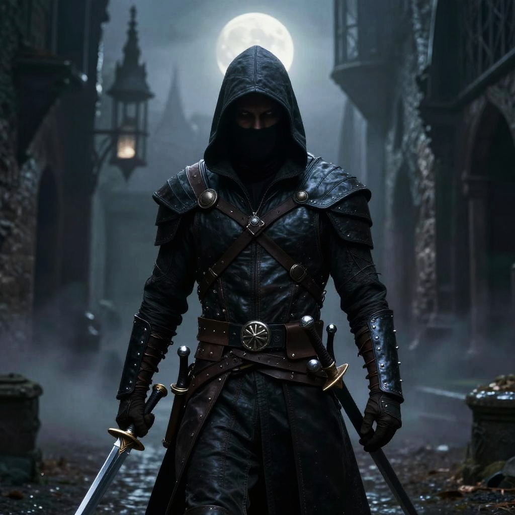 Sexy Rogue in Moonlit Castle Shadows