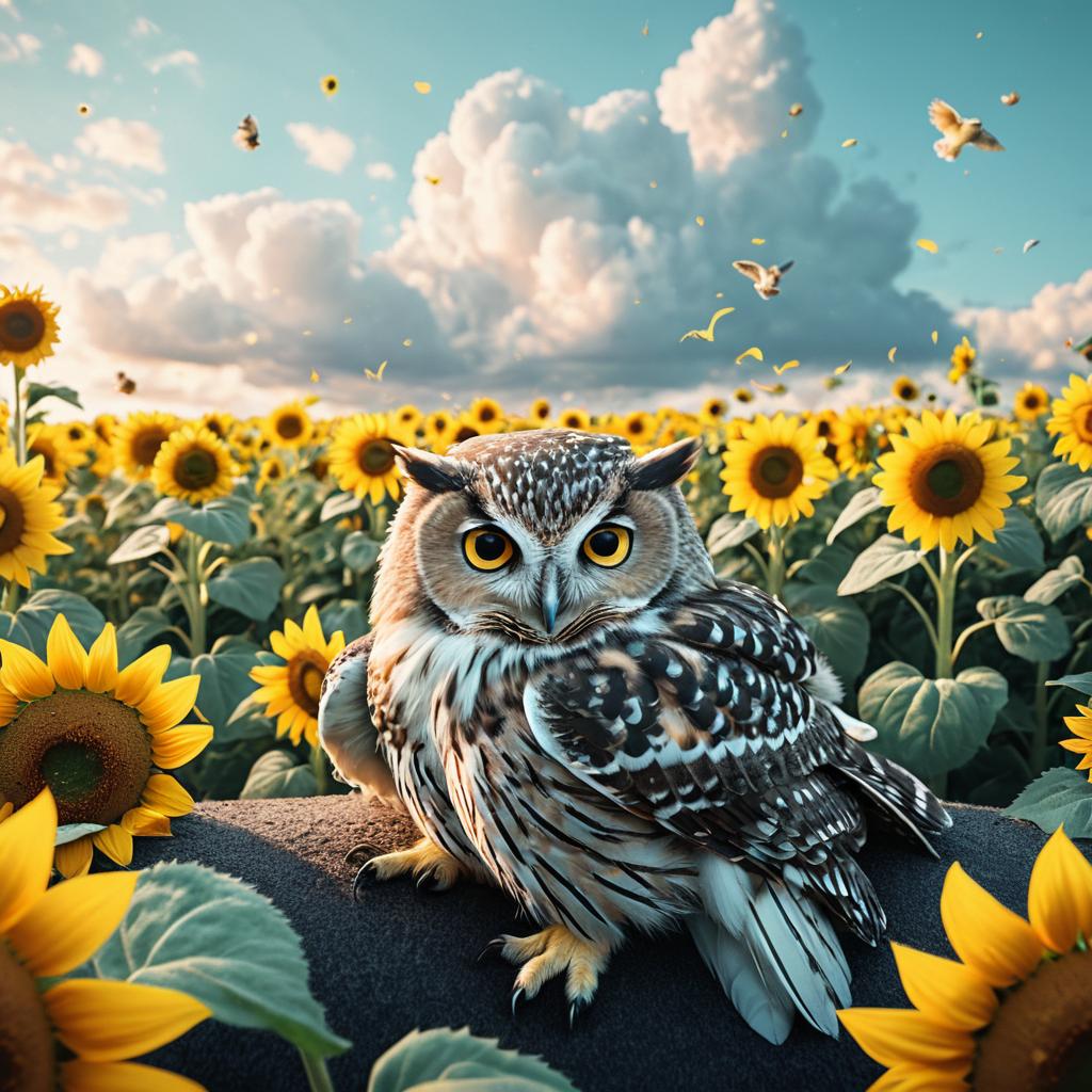 Sleeping Koala in Sunflower Field at Sunset
