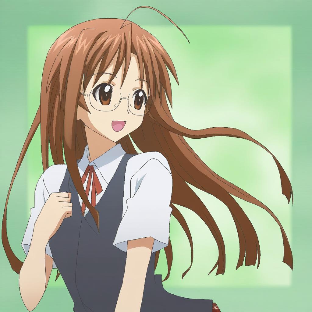 Hasegawa chisame, mahou sensei negima!, 1girl, brown eyes, glasses, long hair, brown hair, ahoge, by artist tomu (tomubobu), leet