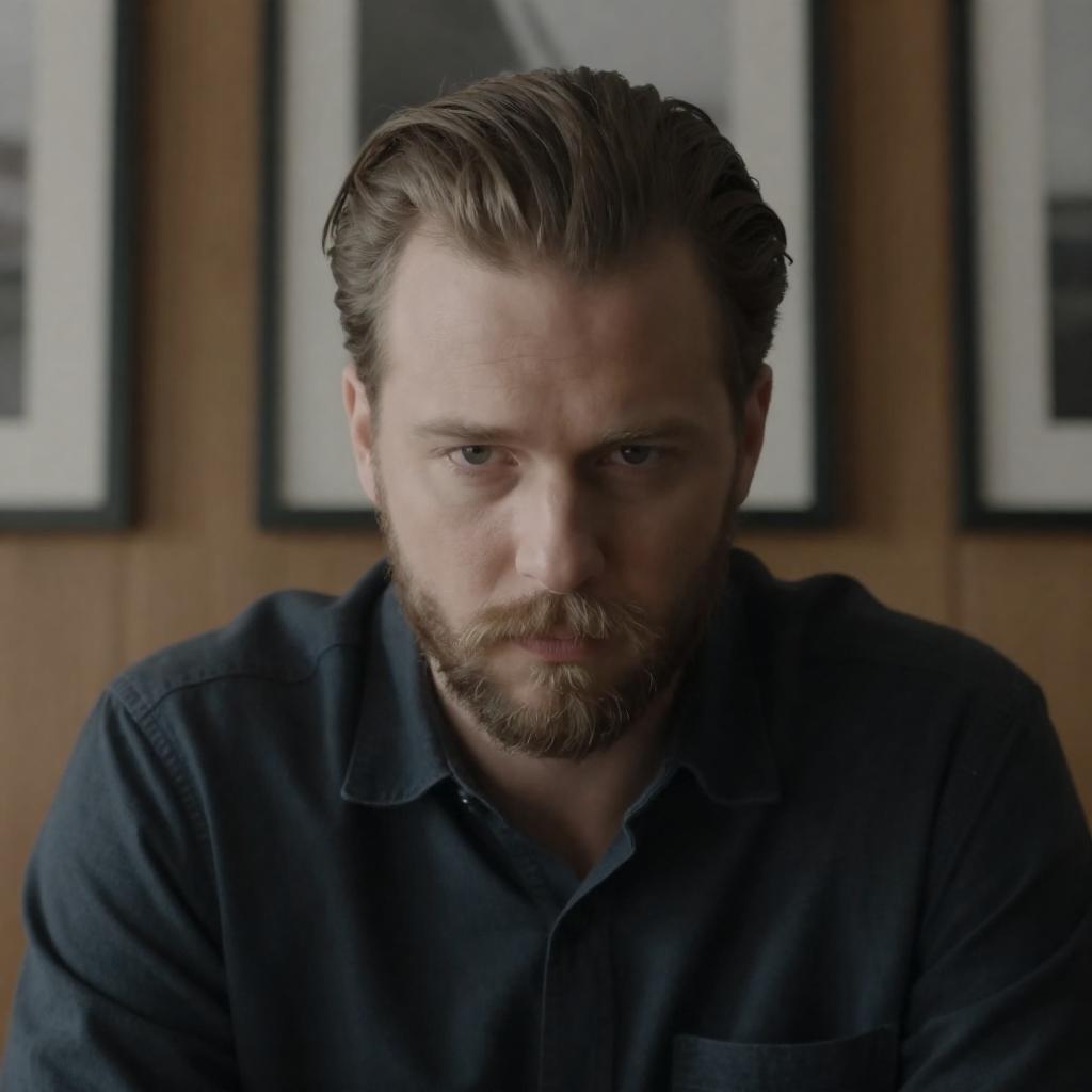 Intense Man with Axe in Dim Room