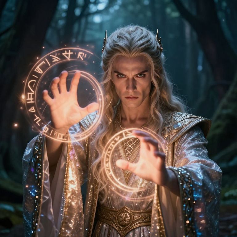Mystical Sorcerer Channeling Ancient Runes