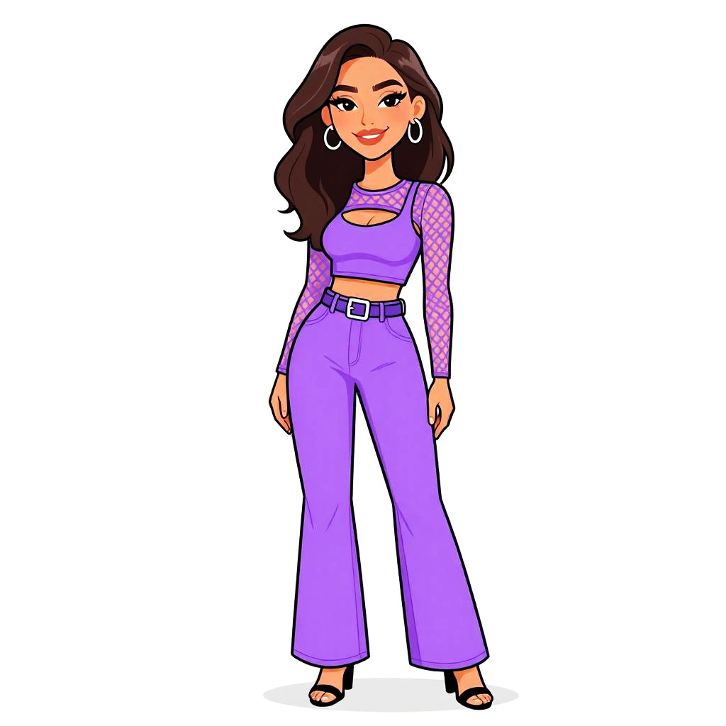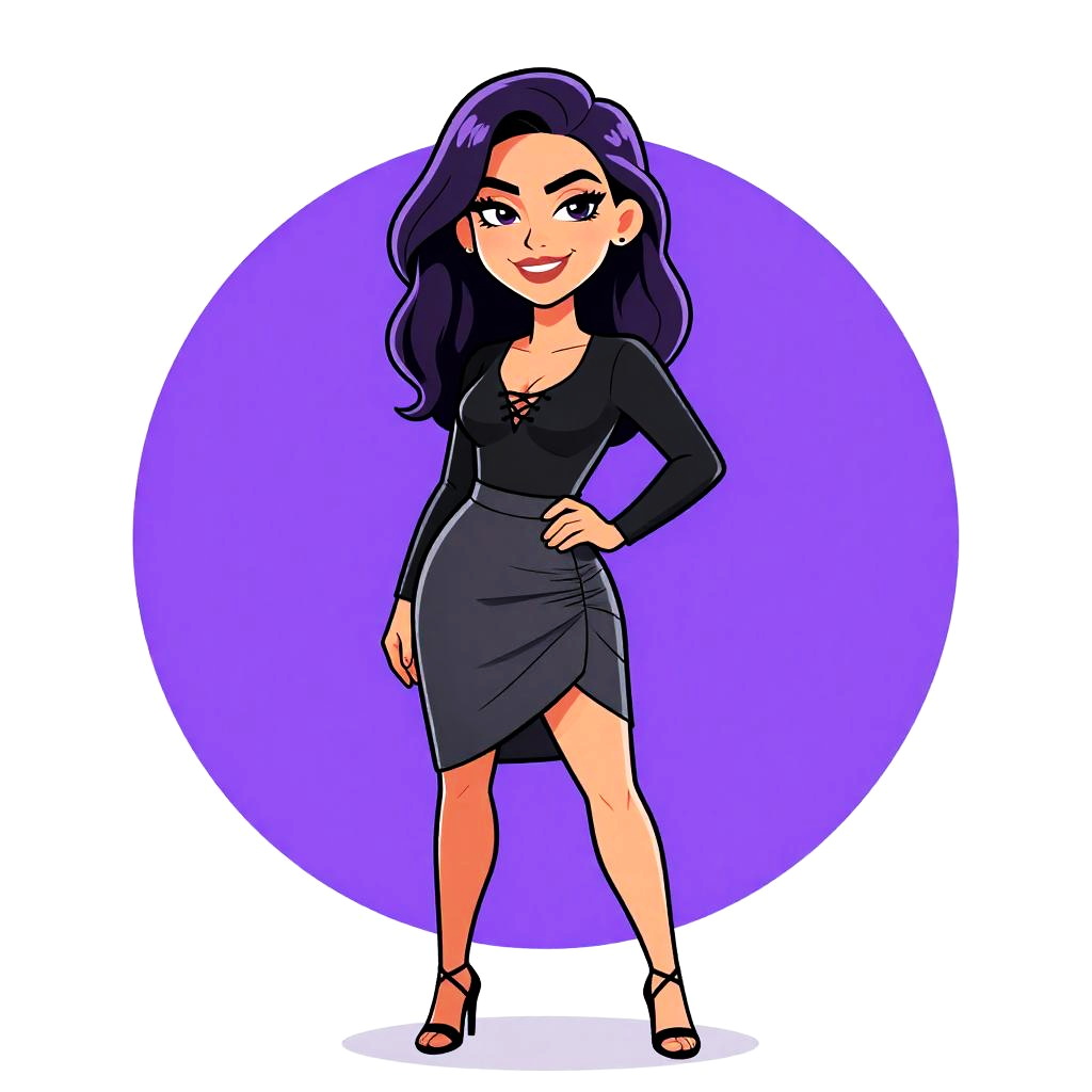 Woman with pretty face and pretty hair. Woman, form-fitting elegance, ribbed knit dress in burgundy, high neck, long sleeves, thigh-length, tan thigh-high suede boots with pointed toes, white studio background. --sref 1467