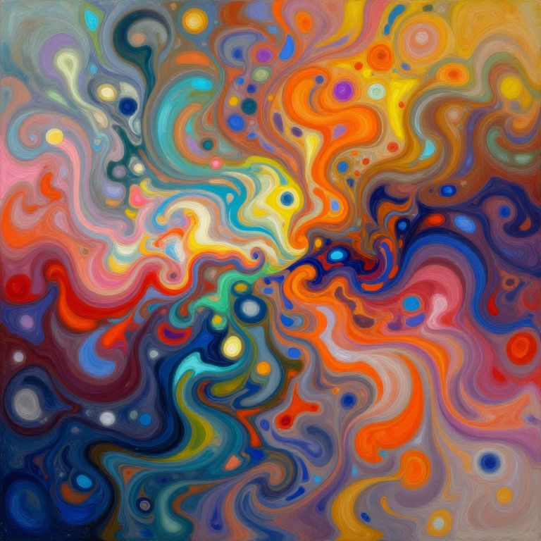 Abstract digital artwork featuring vibrant gold, blue, and pink radial lines with textured, metallic gold accents on a colorful, swirling background.