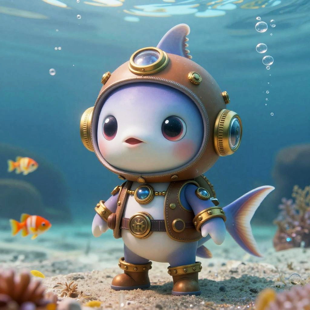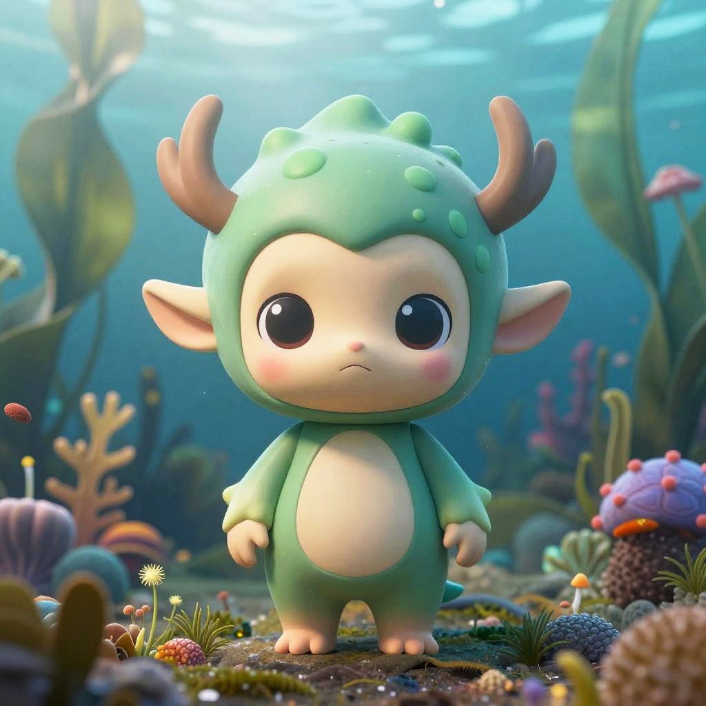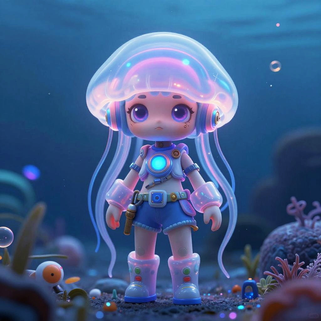 Cute, full body, male sci-fi electric eel warrior, large eyes, glowing neon, sharp focus, simple background, creative, underwater