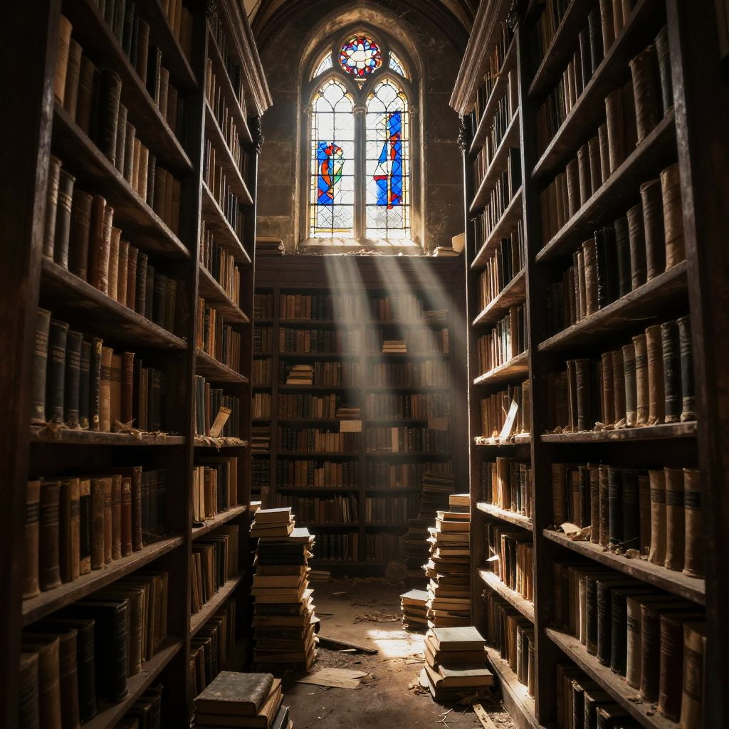 Ancient Library with Scholar Reading