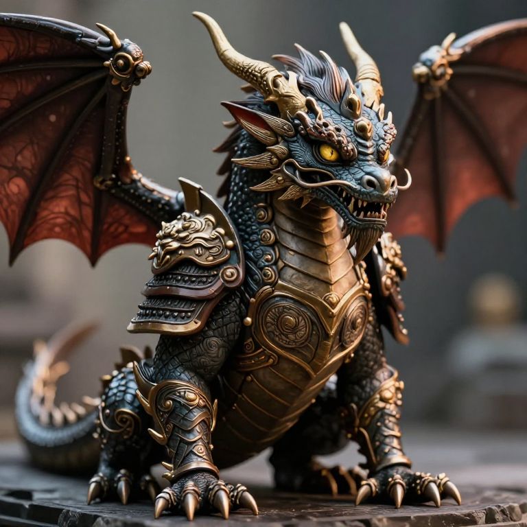 A highly detailed, ultra-high-resolution 8K dragon with intricate armor and striking eyes, captured in a dramatic, cinematic pose with soft lighting and volumetric shadows.