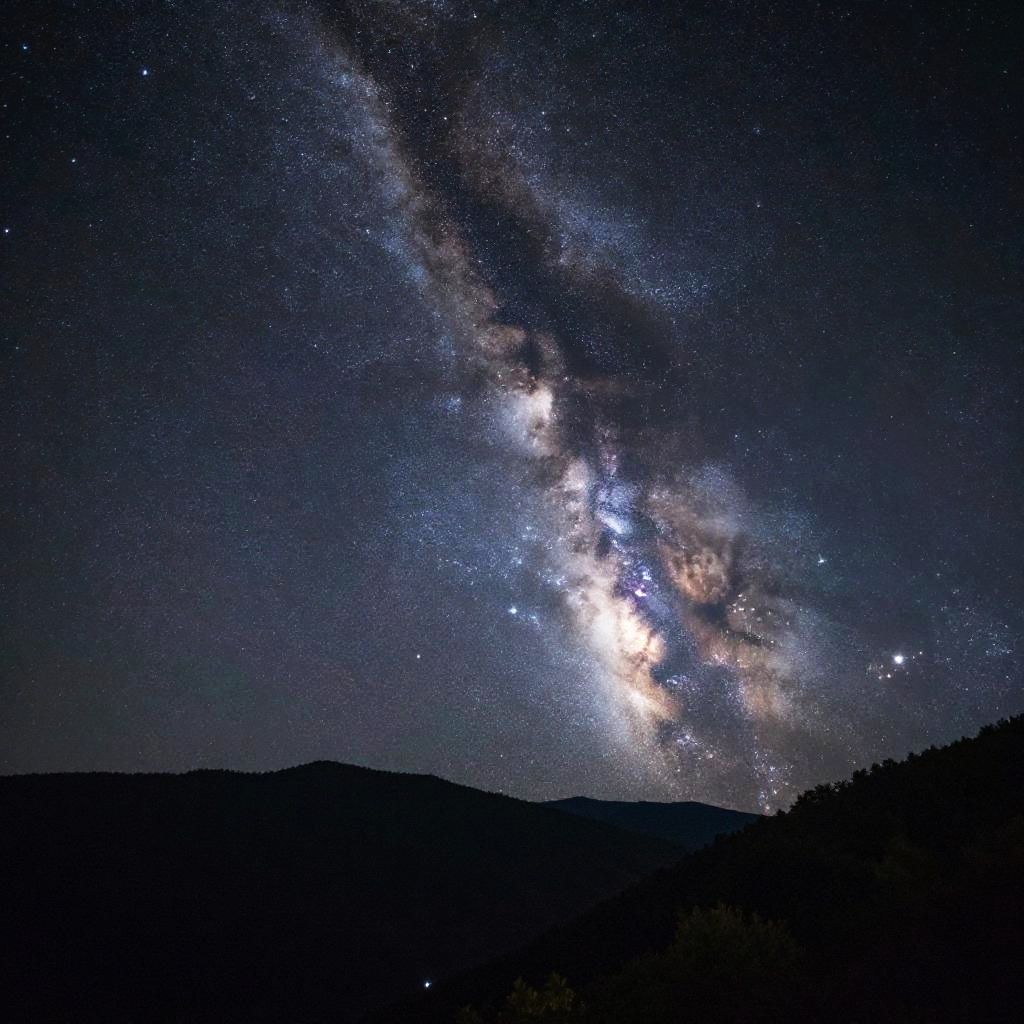 1,000,000 stars sparkling in a vast night sky above a serene mountain landscape, Milky Way vividly visible, peaceful and majestic atmosphere, photorealistic with deep contrast and natural color palette