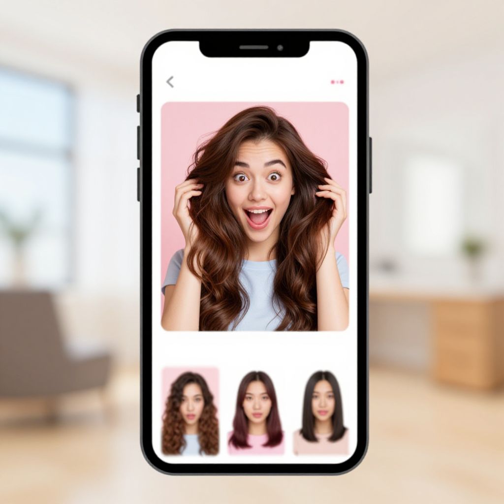 Photograph of a smiling Asian child with black hair, overlaid with a digital cartoon of a brown-haired girl, displayed on a smartphone.