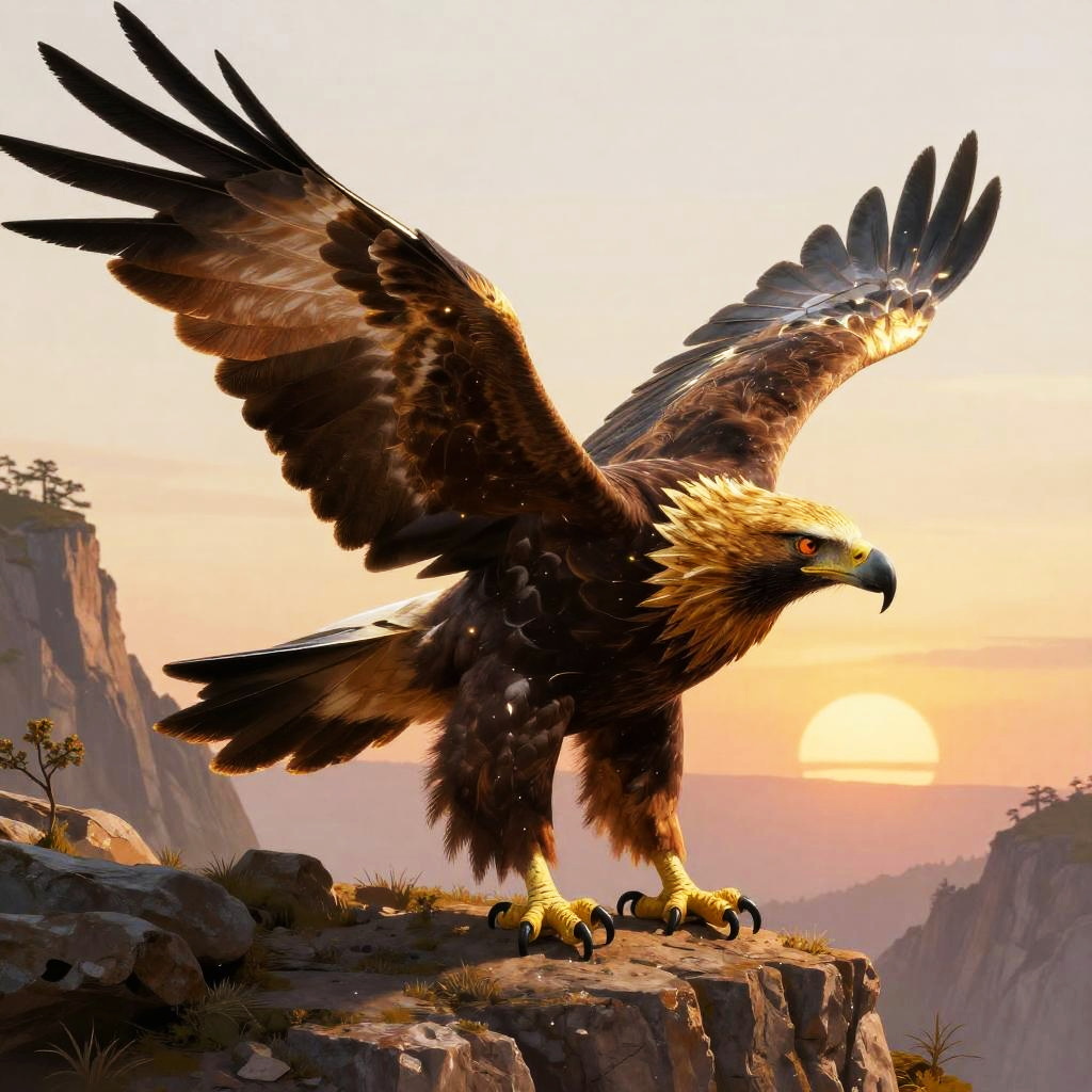 Harpy, fantasy, magic, dusk, cliff edge, artwork, abstract, masterpiece, best quality, realistic