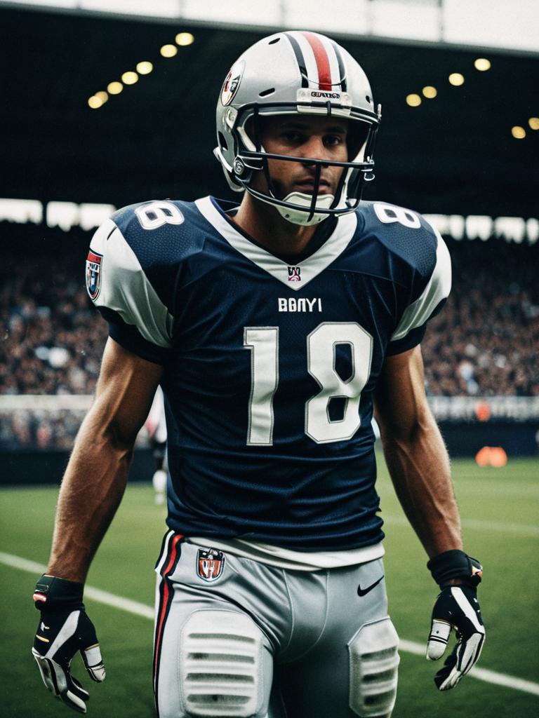 Football player in stylish gear, photorealistic sports portrait, cinematic realism