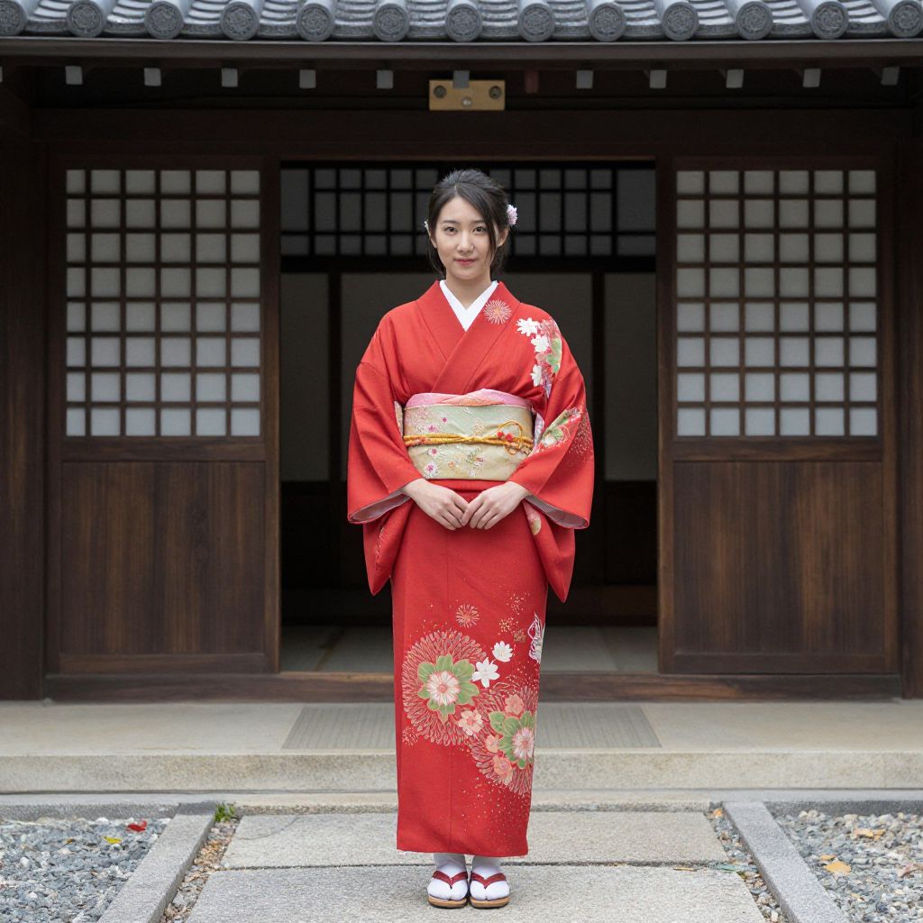 Woman in Traditional Red Kimono