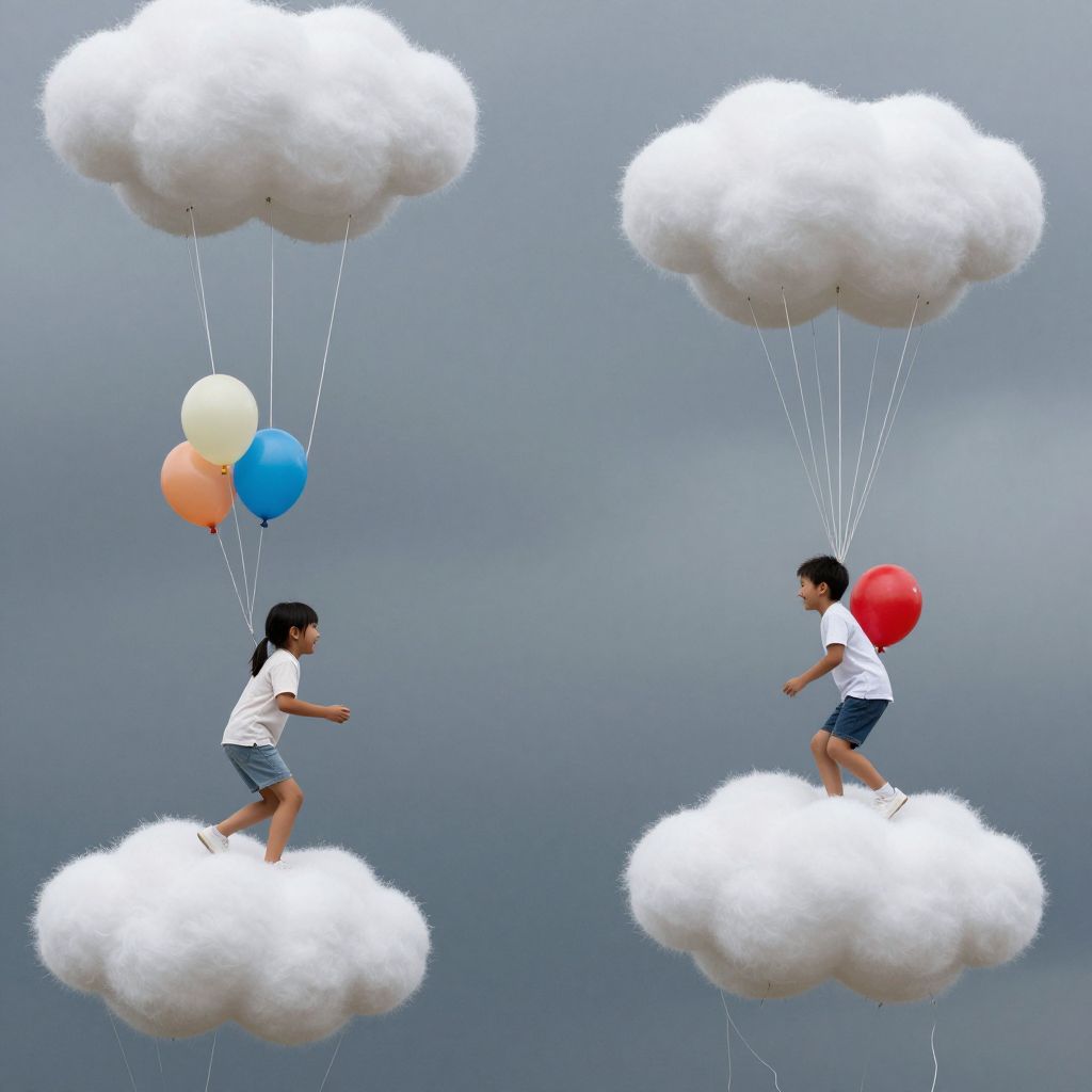 Children Sledding on Thunderclouds