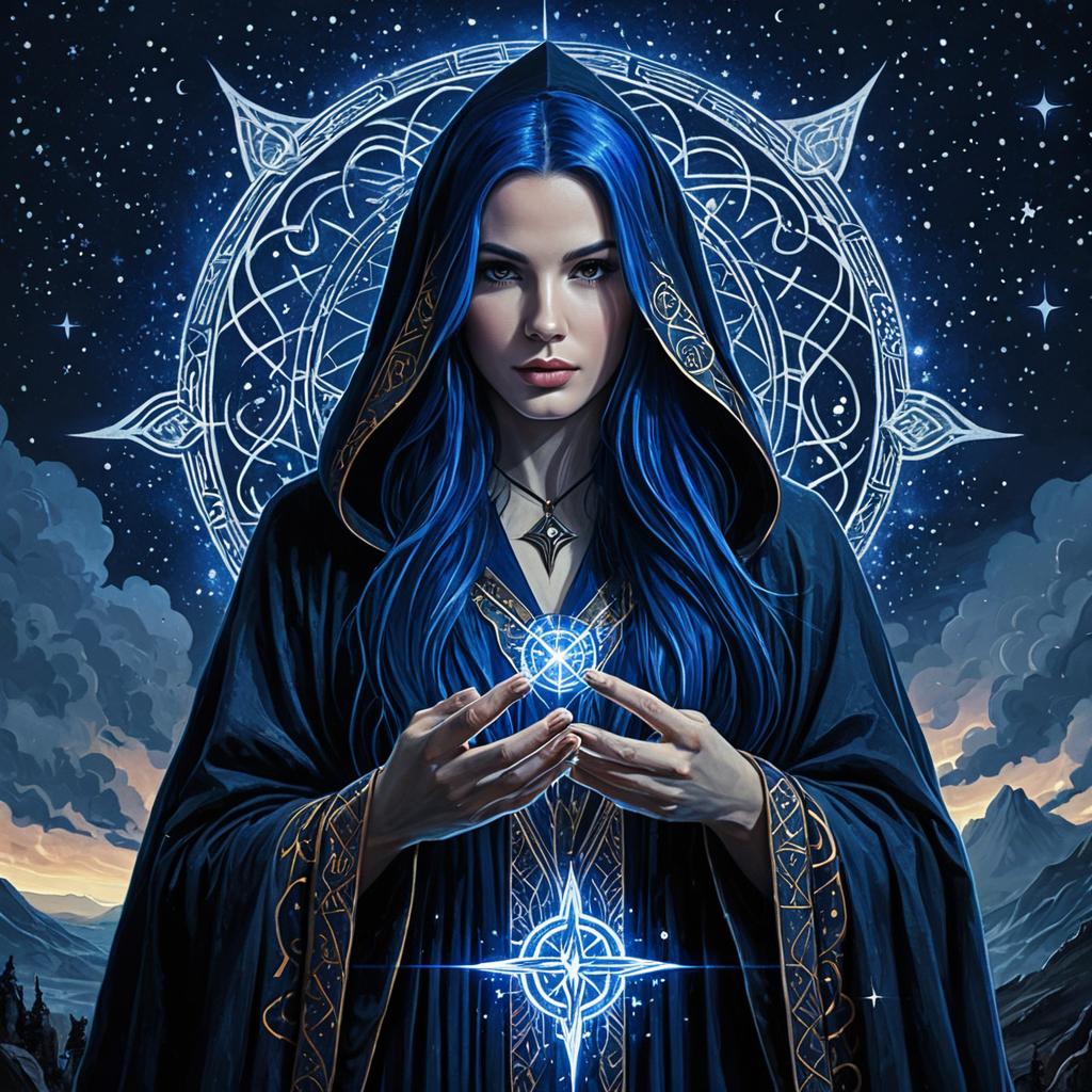 A highly detailed digital painting of a enchanted mermaid with long flowing hair decorated with seashells and pearls and wearing a an iridescent scale top. Set against a sunset ocean waves with sparkling lights, the composition exudes a soft yet gothic atmosphere. Inspired by Charles Eastman, this character portrait combines intricate details with a moody, romantic style, capturing a delicate and mysterious beauty.