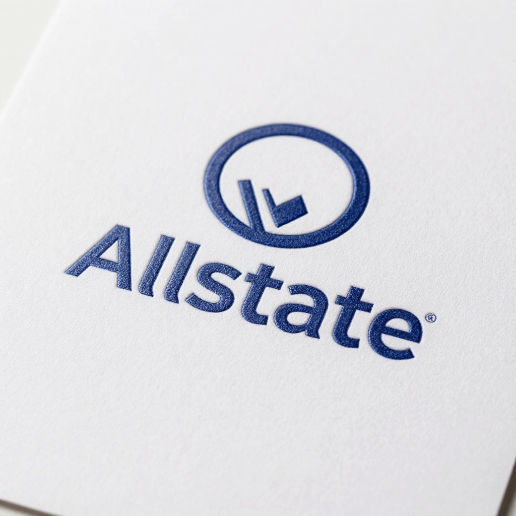 Allstate logo white, embossed on pure white textured paper, soft shadows and natural lighting, professional branding concept, photorealistic close-up