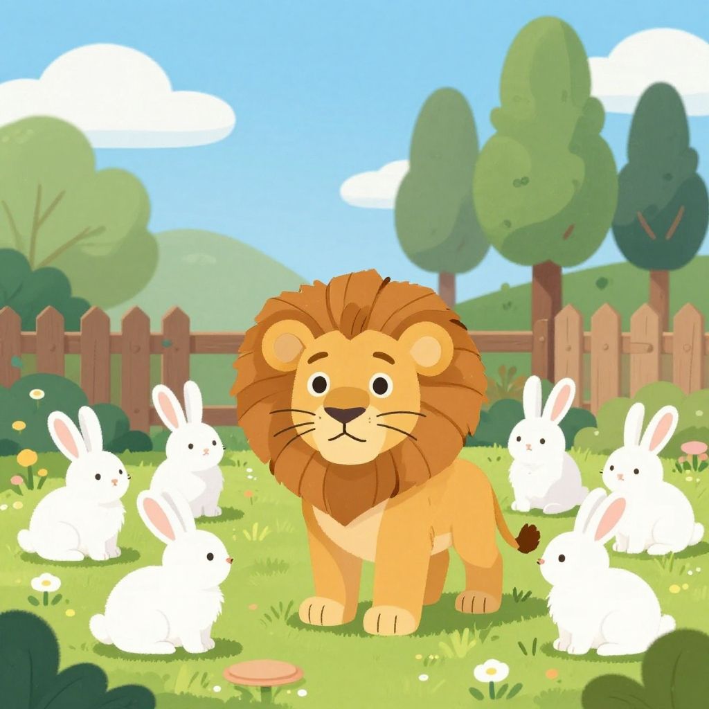 Kawaii Muscular Lion in Savannah