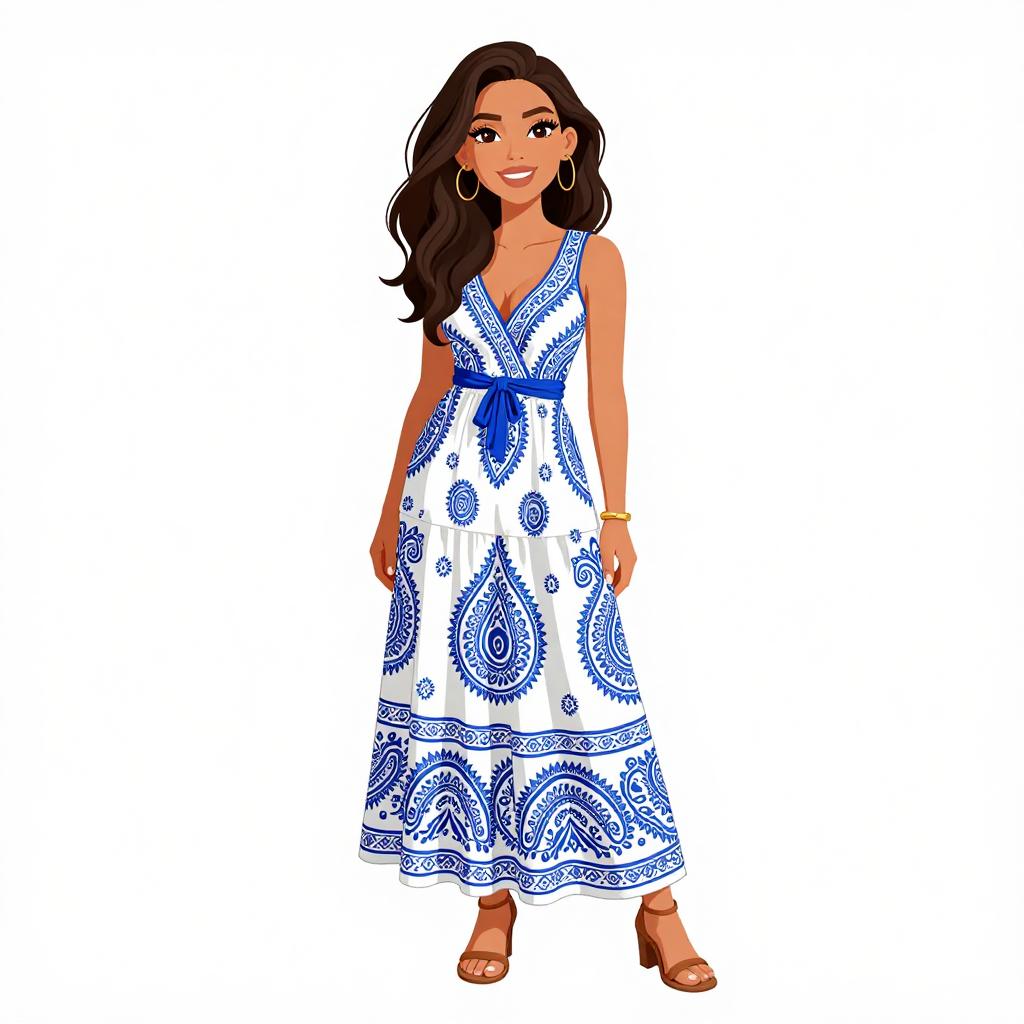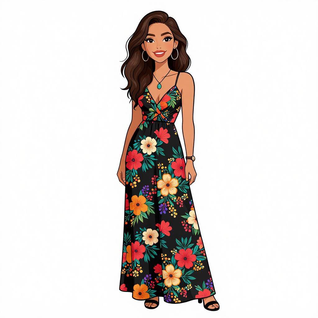 Smiling Woman in Vibrant Maxi Dress