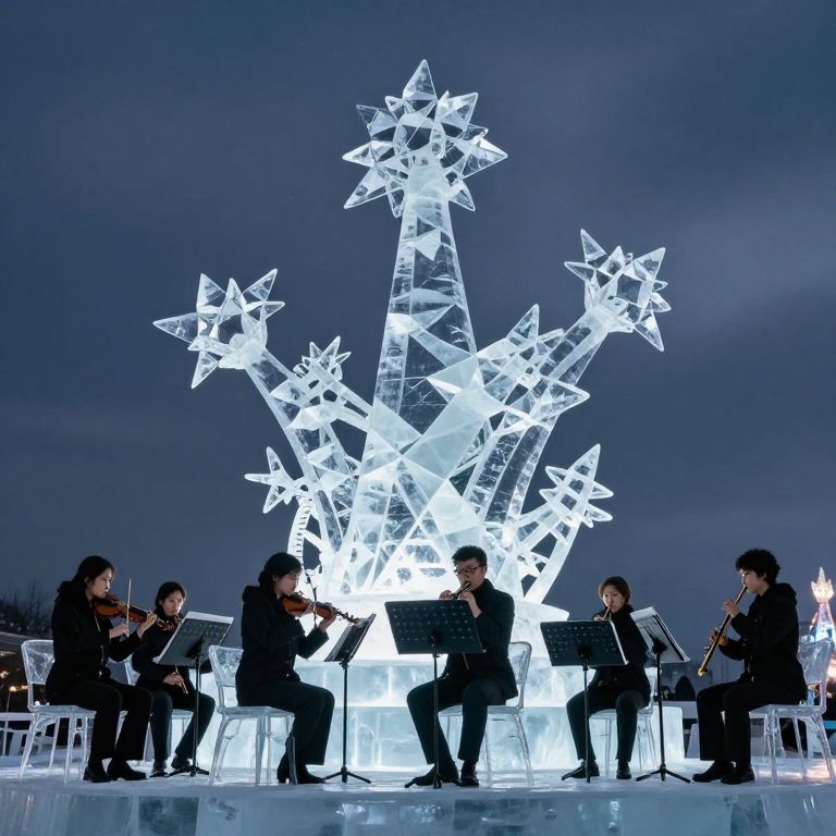 Orchestra Beneath Luminous Ice Sculpture