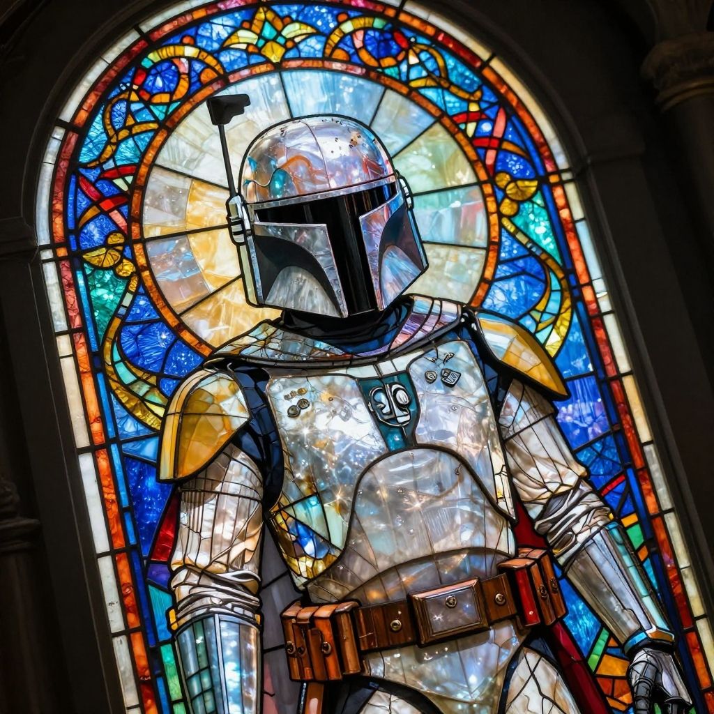 "Sparkling stained glass!!!! Boba Fett made of ornate colorful stained glass, beautiful snow white, '('('( sparks glitter, dramatic light, sparkles, highly detailed professional photography by Alphonse Mucha, Syd Mead, Erik Johansson, Pino Daeni, tilt shift, masterpiece, incredible depth, dramatic lighting, cryengine, complementary colors, vibrant triadic colors. Fantastic detail. Depth of field. Incredible color contrast."Weight:1.3"Sparkles and fairy dust float and pop around his helmet and armor."Weight:1.3"intricate details, HDR, beautifully shot, hyperrealistic, sharp focus, 64 megapixels, 16k resolution, shot on DSLR, perfect composition, molecular precision, high contrast, cinematic, atmospheric, moody, photorealistic, hyper detailed, cinematic color film still. UHD. Weight:1.2Fantastic detail. Depth of field. Incredible color contrast."Weight:1.3"intricate details, cinematic color film still. UHD. Weight:1.2"ugly, tiling, poorly drawn hands, poorly drawn feet, poorly drawn face, out of frame, extra limbs, disfigured, deformed, body out of frame, blurry, bad anatomy, blurred, watermark, grainy, signature, cut off, draft"Weight:-0.3