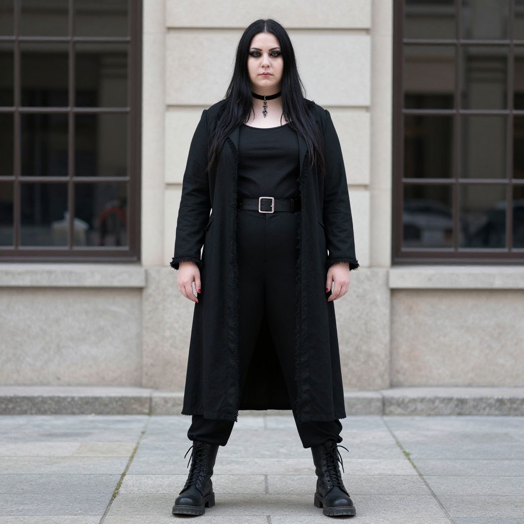 Plus Size Goth Clothes Costume, man in a black outfit standing in front of a building
