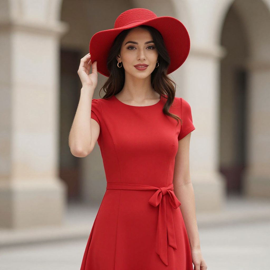 "Woman Festival Dress, woman in a red dress and a red hat"