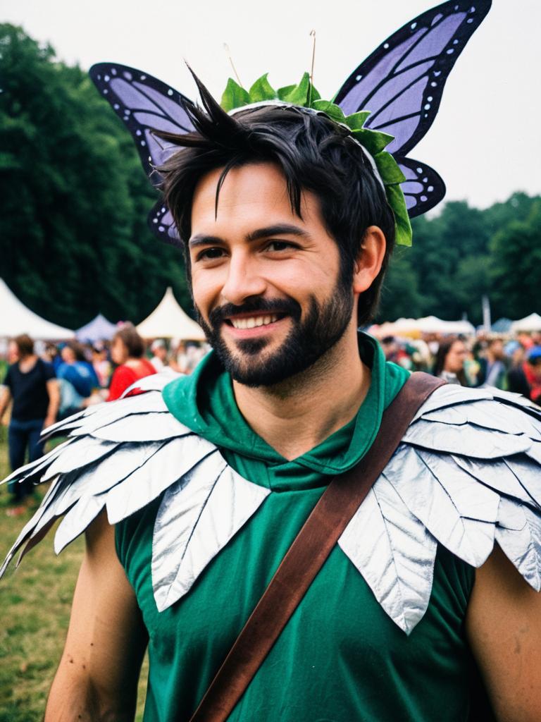 Man in Fairy Costume, candid cosplay portrait at outdoor festival