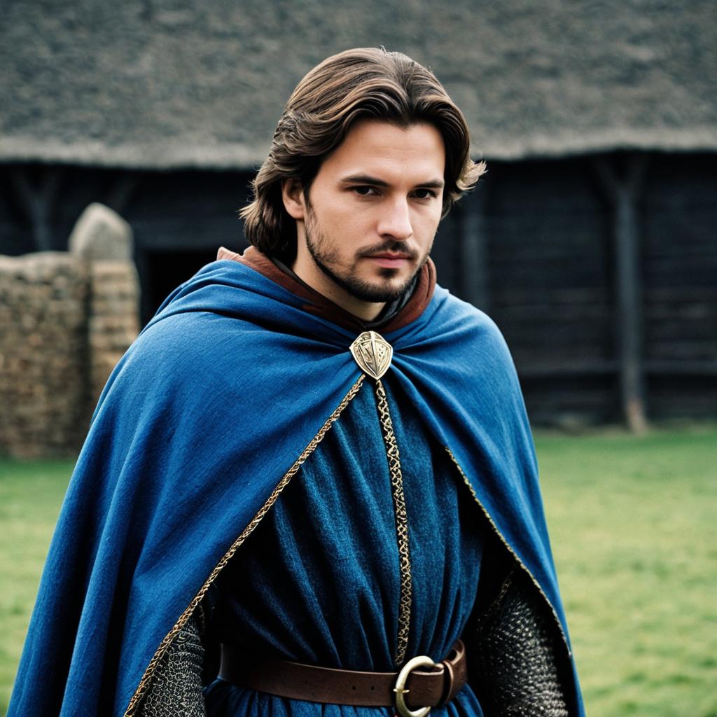 Adult knight costume ,armor, 1boy, solo, male focus, outdoors, shoulder armor, brown hair, gauntlets, tree, forest, looking at viewer, pauldrons, breastplate, chainmail, gloves, standing, nature, blurry background, vambraces, blurry, closed mouth, facial hair, fingerless gloves
