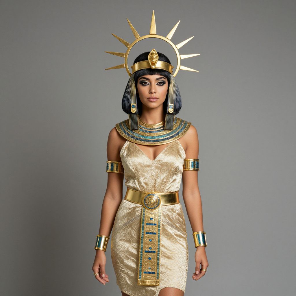 Foxy Cleopatra Costume, woman in a costume of the goddess of the sun