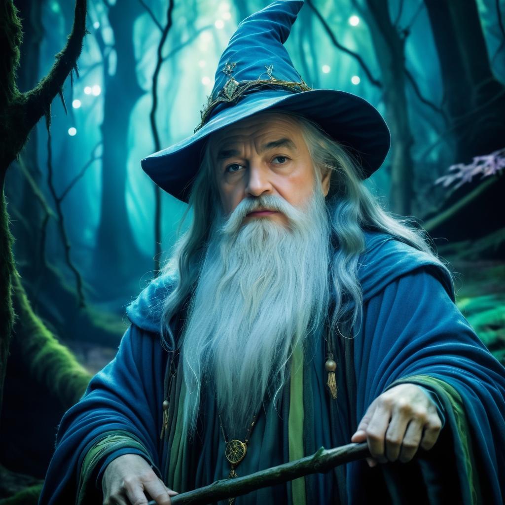 Portrait of Wise Old Wizard in Mystical Forest