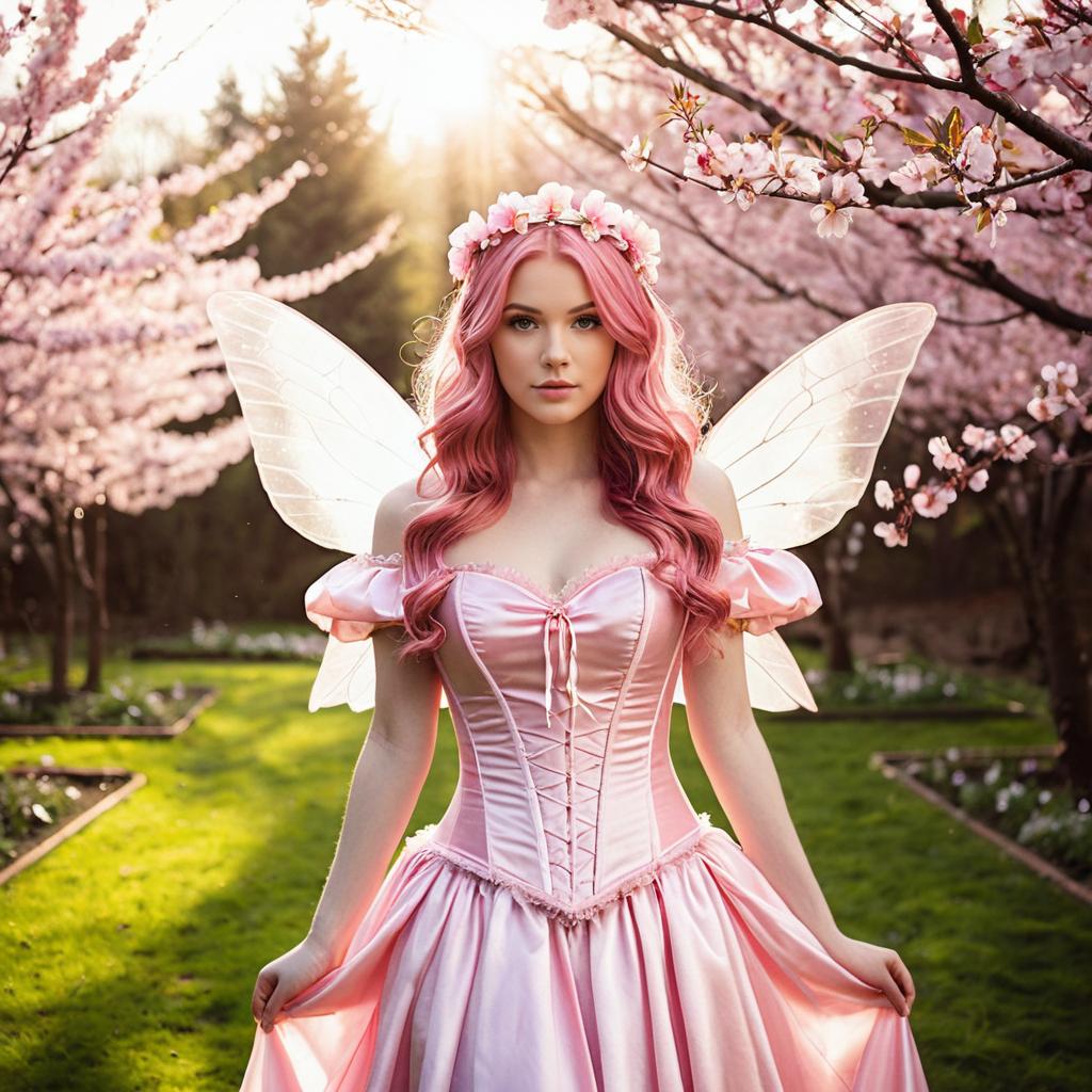 Anime outfit costume, digital art, anime-style, beautiful young woman, standing in forest, sunlight filtering through trees, wearing colorful princess dress, off-the-shoulder top, pastel pink, turquoise, yellow, and green, puffed sleeves, layered skirt with pink, purple, and turquoise, large bow at waist, flower crowns, red, blue, and purple flowers, long wavy brown hair, fair skin, cute, soft light, bokeh background, realistic ures, detailed, whimsical, fantasy, serene atmosphere, T2I model, high-quality, photorealistic lighting