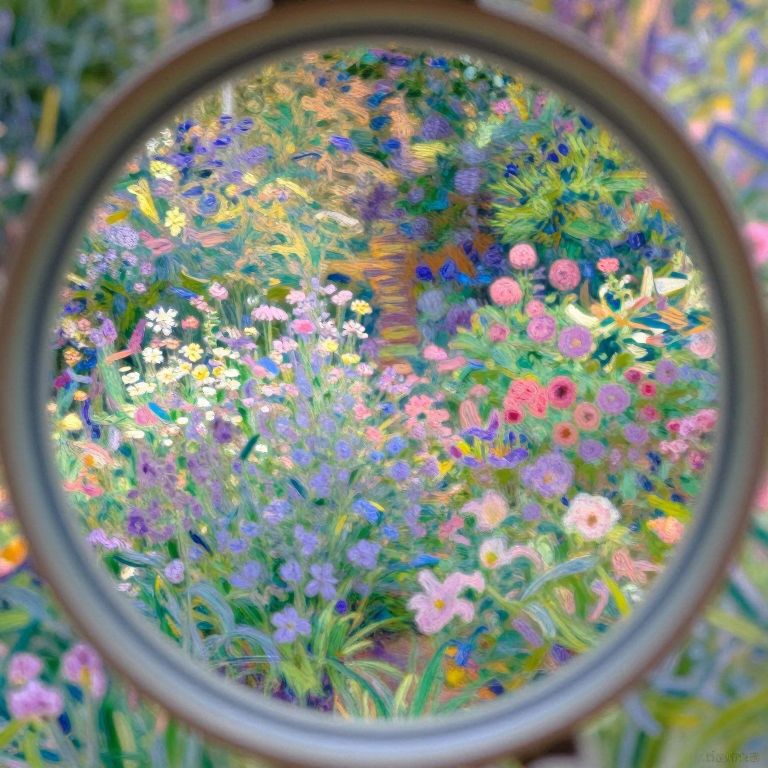 Craft an image reflecting the dreamy, whimsical essence of impressionist art, reminiscent of Hermes Monet's captivating garden scenes. Depict a tranquil botanical landscape viewed through an antique kaleidoscope lens, distorting the vibrant colors and textures of flowers and foliage into a mesmerizing pattern. This enchanting perspective should evoke feelings of wonder, curiosity, and nostalgia, while highlighting nature's abstract beauty in intricate detail. Employ Monet-inspired brushstrokes and soft pastel hues to capture the essence of his signature style, combined with the playful, distorted vision of the kaleidoscope for a visually stunning and emotionally evocative masterpiece.