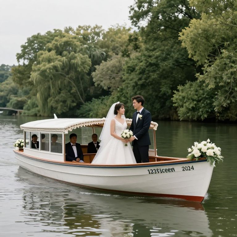 Romantic Wedding Boat Scene