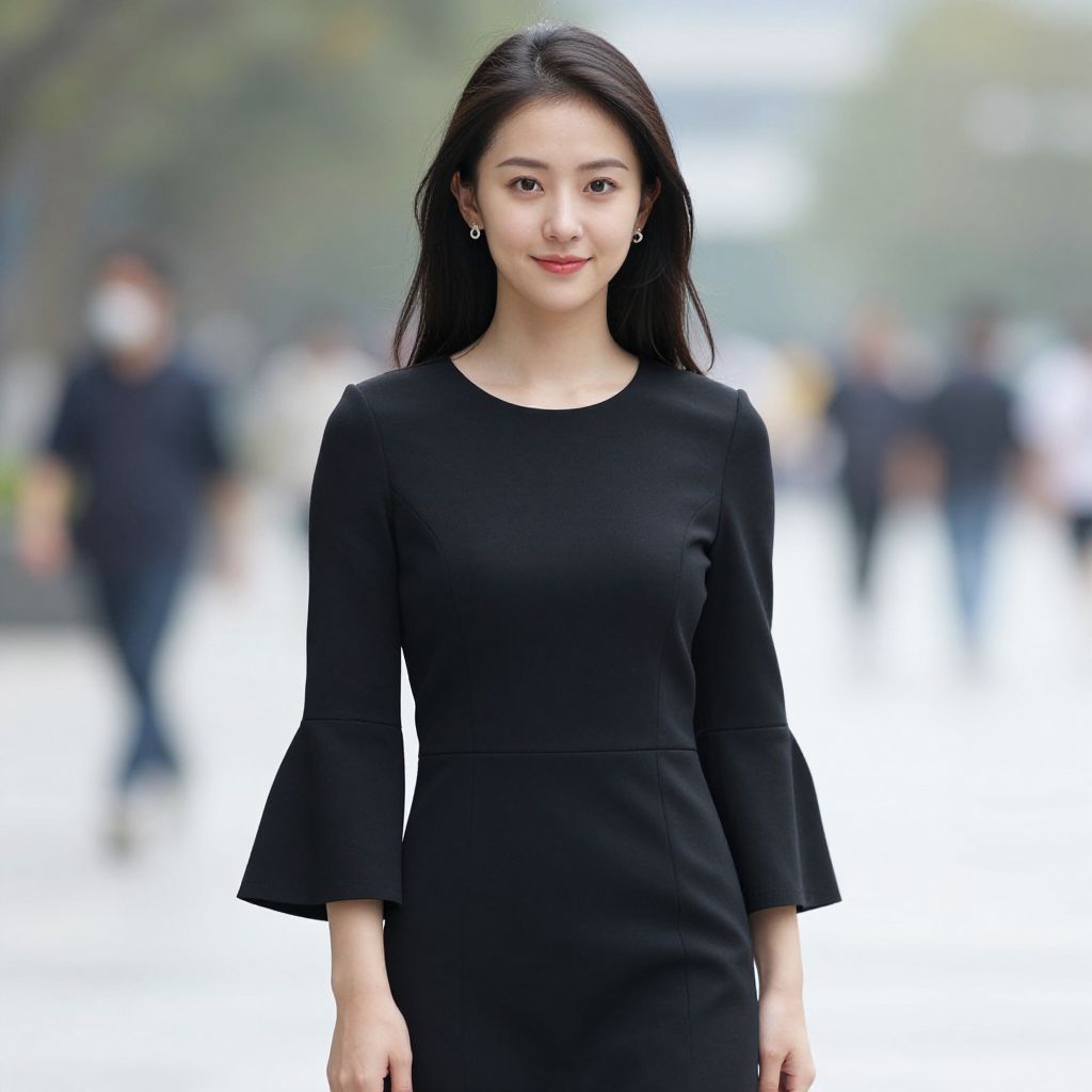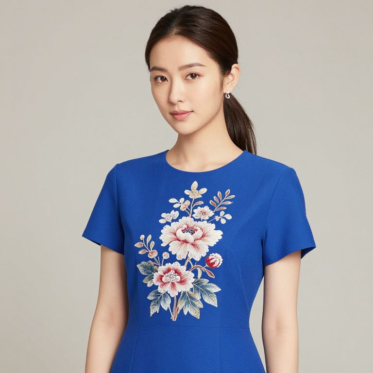 Woman in Blue Floral Dress